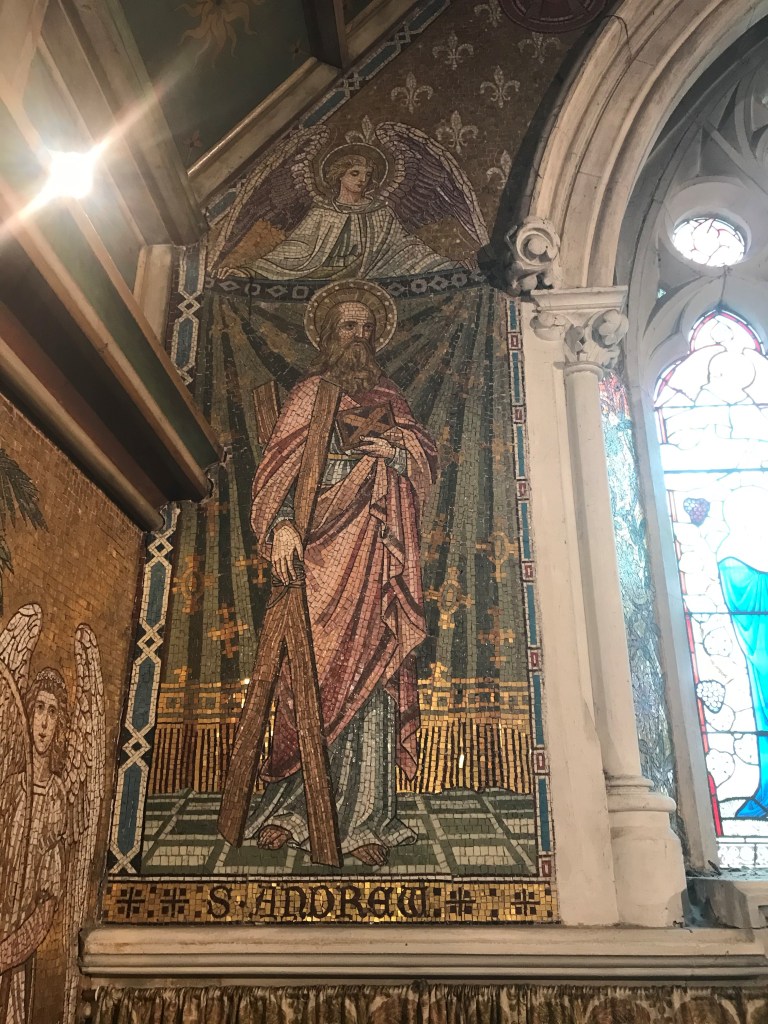 The mosaics in the nave are later (1899) and less impressive. They were given by the Evans daughters in memory of their mother.